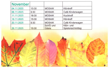 Veranstaltungen Ehra-Lessien Veranstaltungen im Dorftreff MOSAIK mosaik-ehra-lessien@outlook.de Posted on 29. Okt 2025 Veranstaltungen